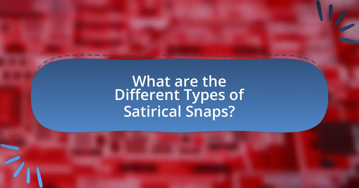 The different types of satirical snaps include political satire, social commentary, celebrity satire, and parody. Political satire targets political figures and events, often highlighting absurdities or contradictions in policies or actions. Social commentary satirical snaps critique societal norms and behaviors, aiming to provoke thought and discussion. Celebrity satire focuses on public figures, often exaggerating their traits or actions to critique fame and culture. Parody involves imitating a style or genre to create humor, often revealing flaws or inconsistencies in the original subject. Each type serves to engage audiences and stimulate critical thinking about various issues.